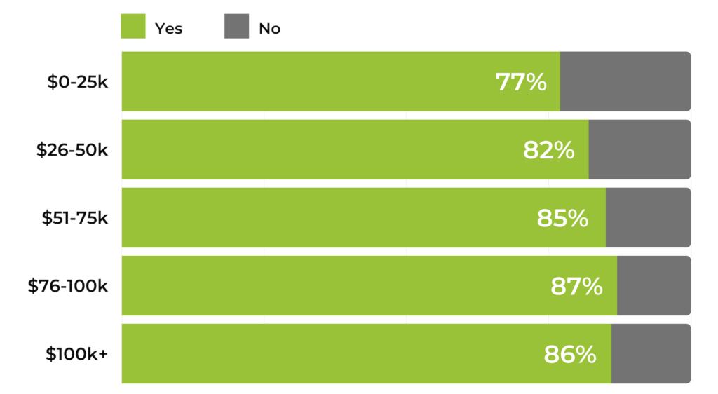 In addition, as household income increases, so too does likelihood that a shopper will try a new product. 77% of those who make $0-$25,000 are open to buying new grocery products online, compared to 85% of consumers with incomes higher than $100,000.