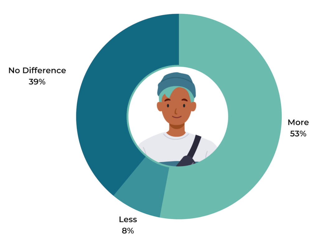Millennials and Gen Z shoppers are even more likely to be influenced by the presence of reviews. Over half (53%) of each of these age groups indicate they’re more likely to click through to a product page if there are ratings and reviews highlighted on the homepage or in search results.