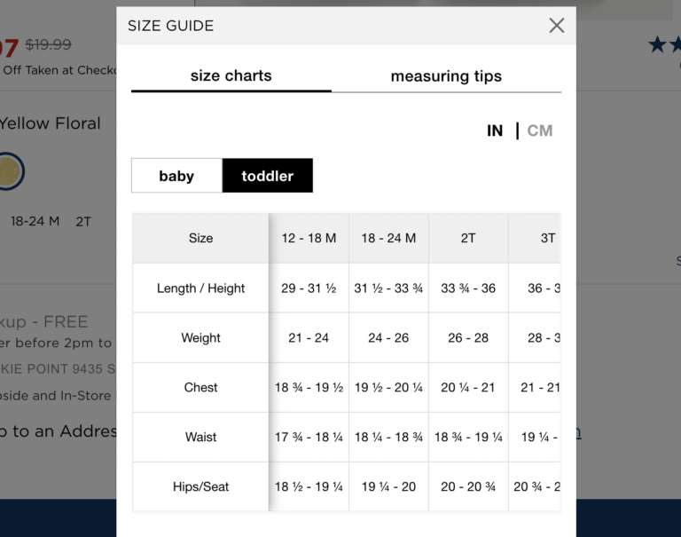 At a bare minimum, brands and retailers must include product measurements and size charts on their product pages.