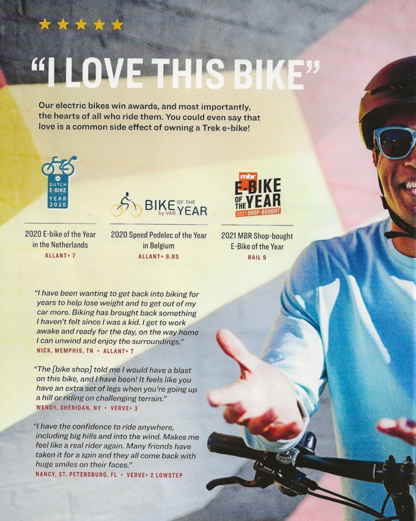 This example from Trek Bikes is fantastic because it leverages social proof in two forms: industry awards and customer reviews.