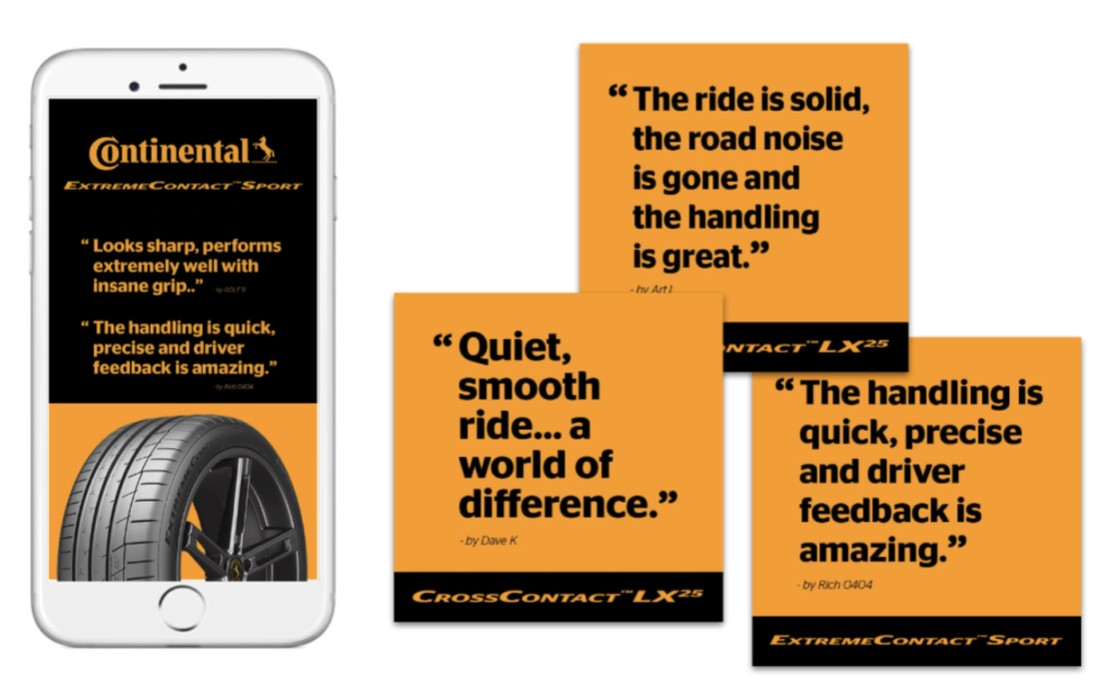 It’s tough to think up new Instagram Stories content daily — let alone multiple times a day. Give yourself a break and showcase your customers’ voices, like Continental Tires does.