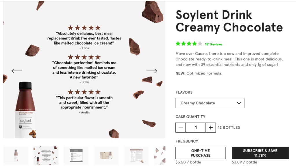 Traditional Medicinals features reviews in their image carousels (this example is taken from the homepage). We love this example because not only do they show the star rating with the review, but they also include a call-to-action.